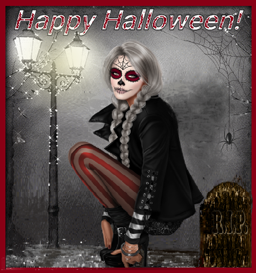 Happy halloween / Fille déguisement monstre , lampadaire.