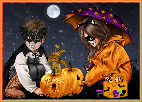 Halloween /2 enfants déguisés et citrouilles