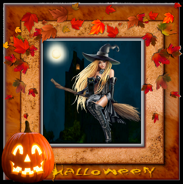 HALLOWEEN: sorcière sur son balai et son chat