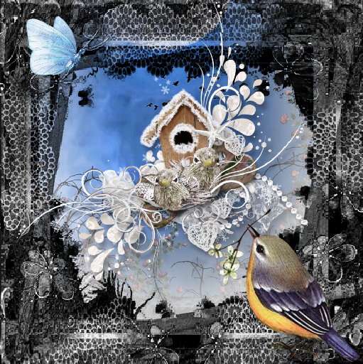 · PAPILLONS FOND BLEU VIOLET NOIR