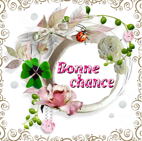Bonne chance/ trèfles 4 feuilles, fleurs et coccinelle.