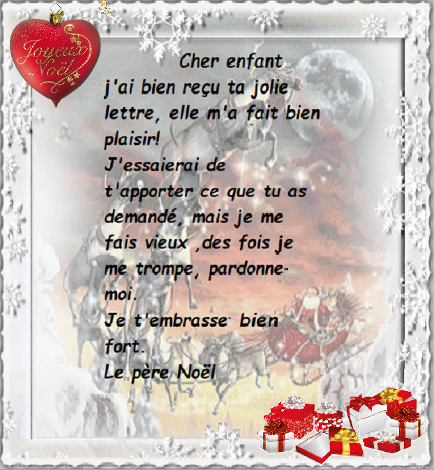 Lettre réponse du Père Noel/ boule coeur et cadeaux