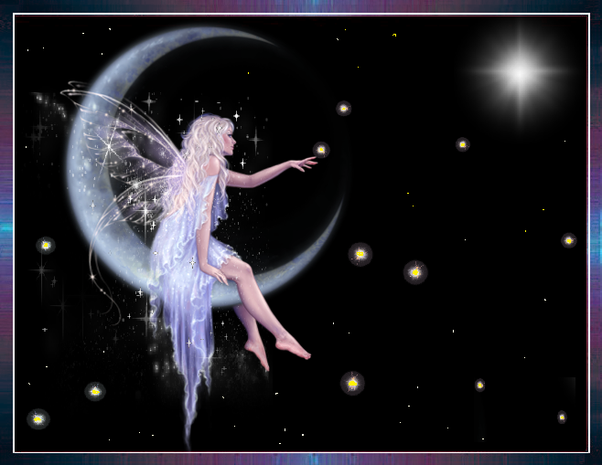 Fée elfe sur la lune et lucioles