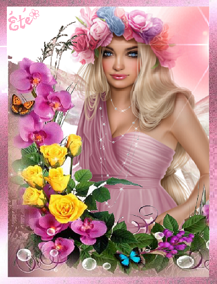 Blonde couronne de fleur et fleurs en été