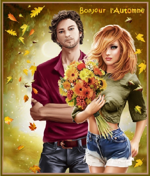 Bonjour l'automne! Couple et bouquet de fleurs automnales